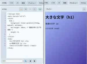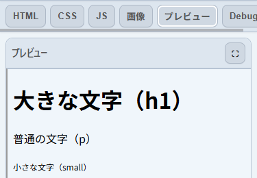 文字の大きさを変えるCSSもご紹介しておきます。前述のソースを見て、お気づきの方もいると思いますが、特定のタグに対して文字サイズを指定しているのが以下のソースです。