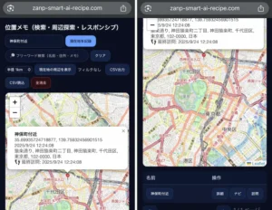 位置メモは特定の端末(スマホやPC)のブラウザに記録が保存(キャッシュ)されます。