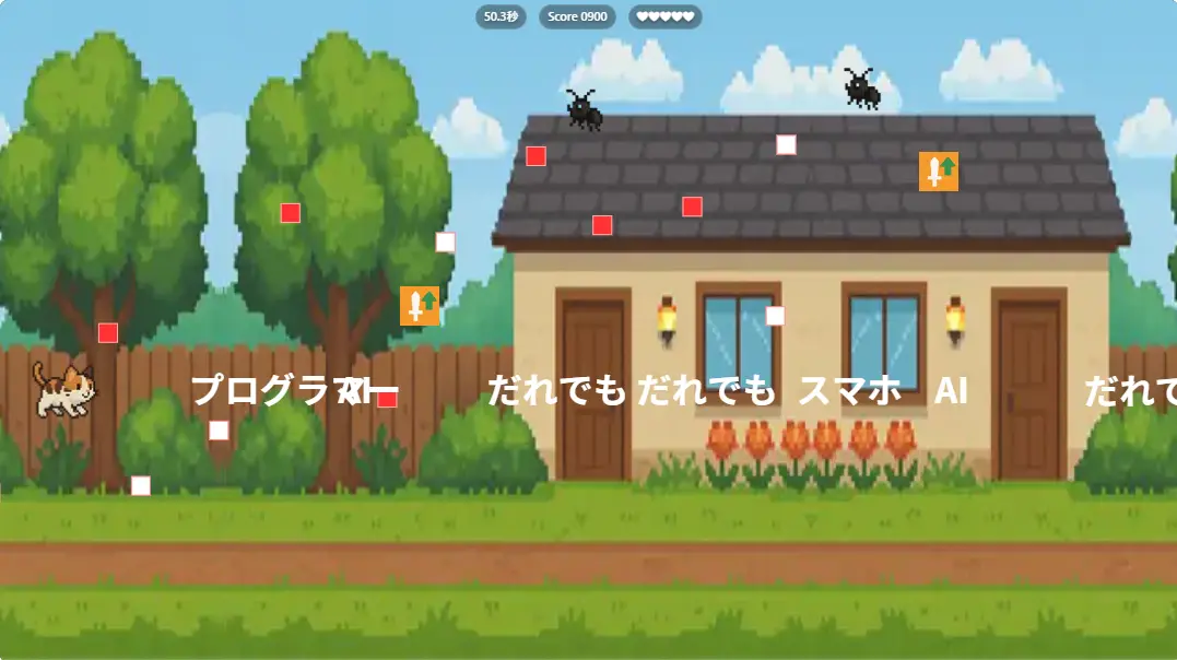 ゲームの裏側では、HTML・CSS・JavaScriptで作られた軽量なエンジンが動作しており、AI技術(ChatGPTなど)を活用してコードを自動生成・最適化しています。