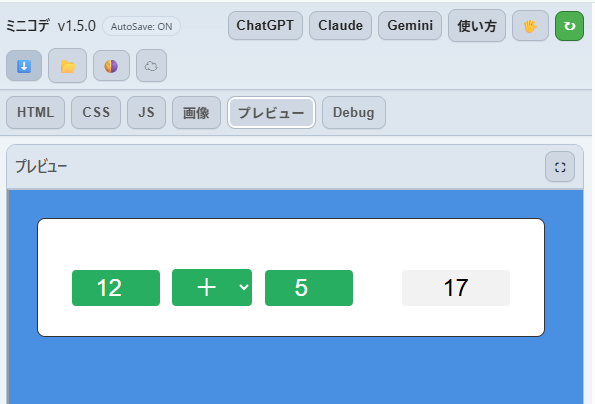見た目のUIは文字数の兼ね合い(説明で書いた文言をつけられてしまった・・・)で崩れていますが、ほぼ正解です。