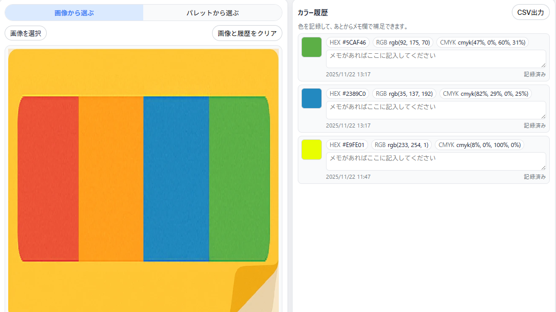 いのっち大丈夫です。なので画像から色を探したり、パレットから色を探すツールを作りました!
